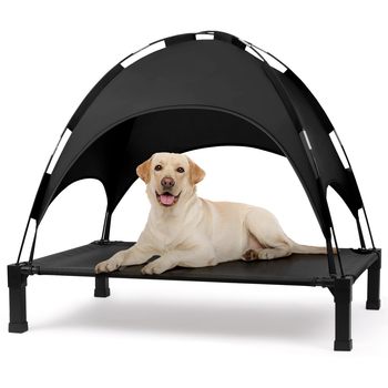 Cama para perros al aire libre con dosel, cama elevada para perros con dosel extraíble, cuna para mascotas elevada de refrigeración portátil exterior para perros